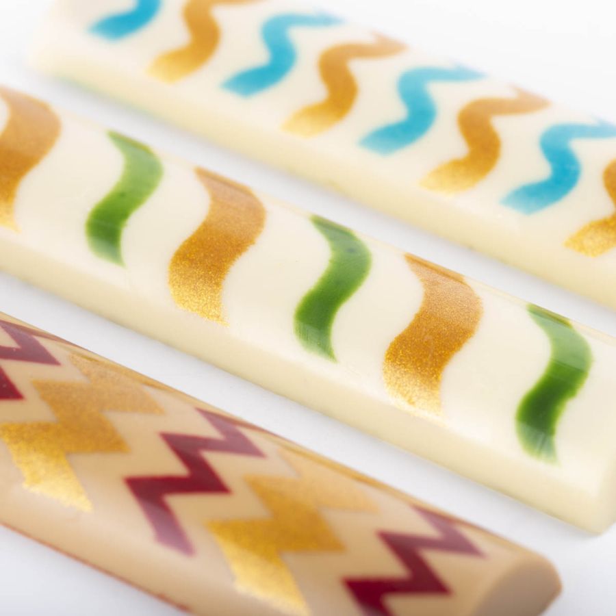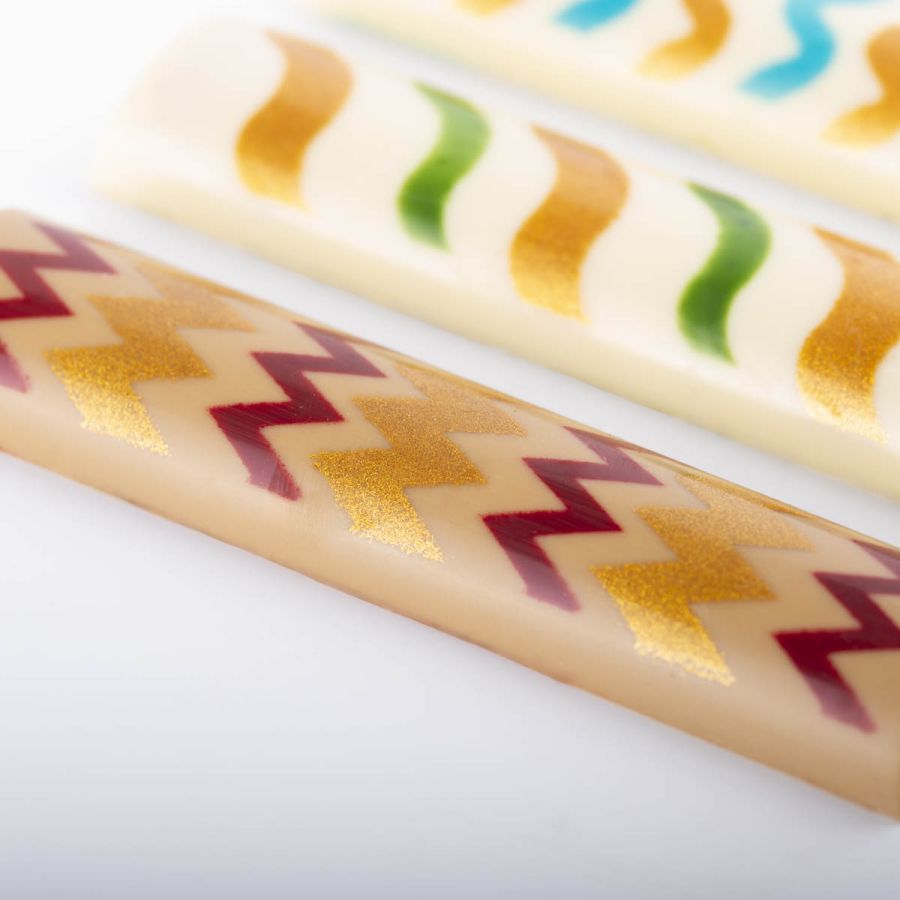 Two of the snacks are made with a soft and enveloping coconut cremino, enhanced by an intense passion fruit caramel creating a refined balance between sweetness and lively tropical notes.