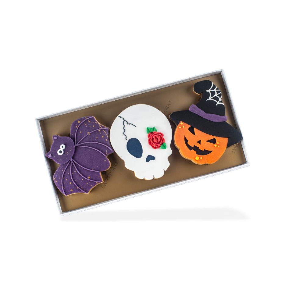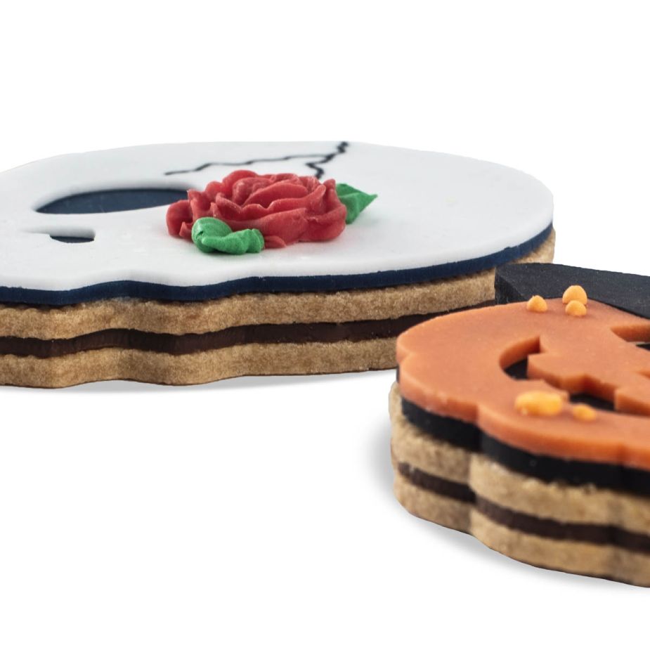 A fragrant, vanilla-scented almond shortbread base encloses a soft heart of gianduja and PGI Piedmont hazelnut spread. Each cookie is covered in sugar paste and decorated with handcrafted care and attention to detail, transforming it into a symbol of Halloween.