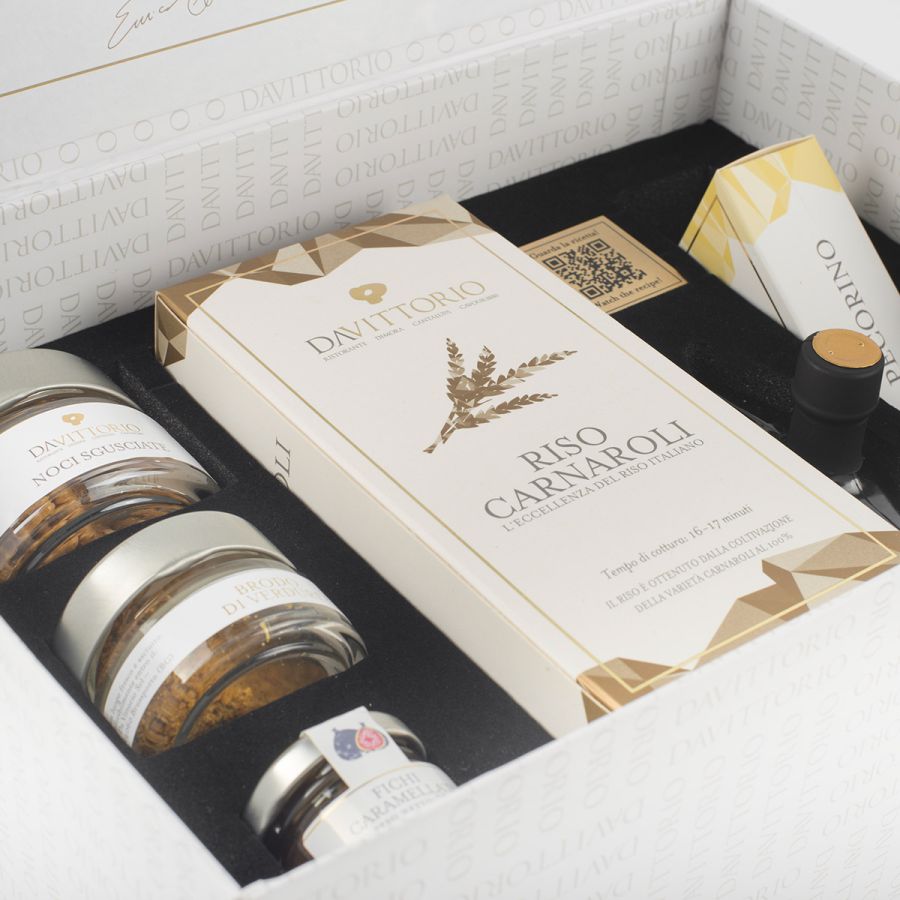 Un kit esclusivo con ingredienti selezionati per realizzare un risotto per 4 persone, arricchito da pecorino, fichi caramellati e noci. Una box da Vittorio Selection che unisce praticità e gusto, pensata come confezione regalo gourmet per chi ama la cucina italiana autentica.