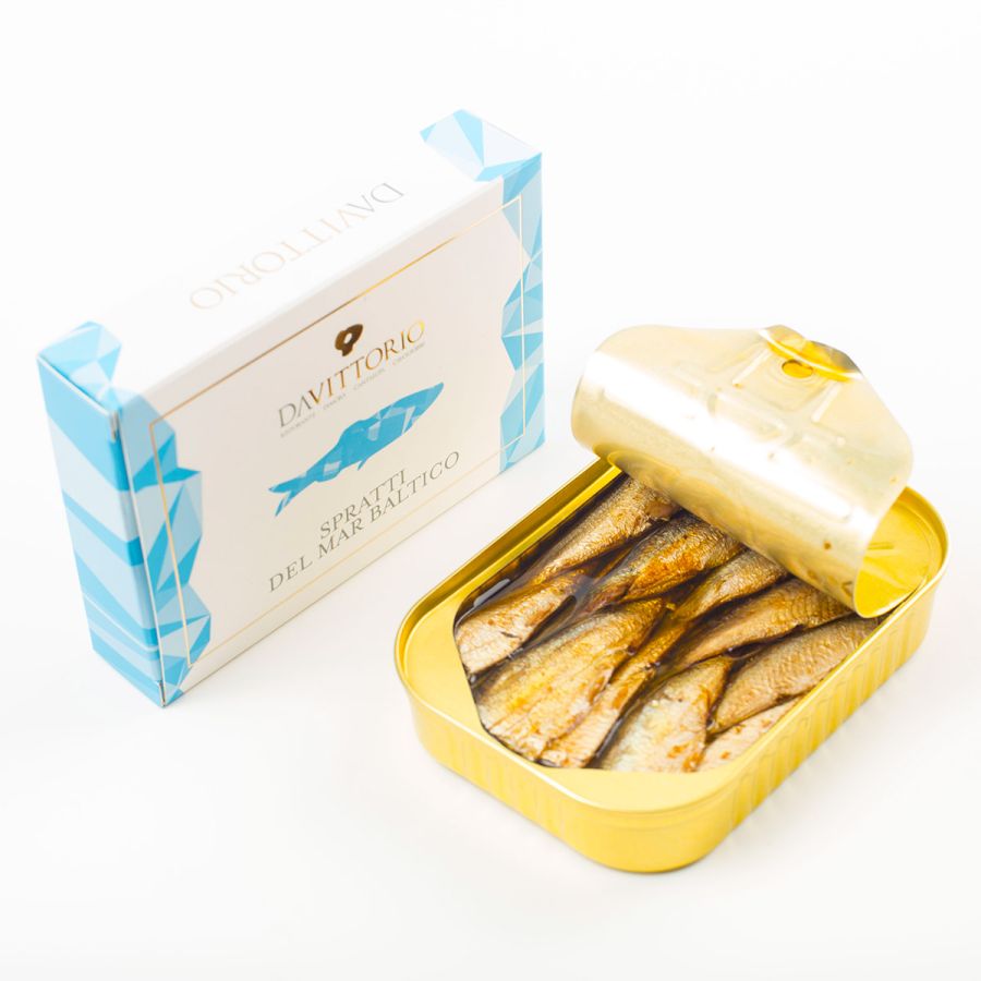 Gli spratti affumicati sott’olio Da Vittorio Selection portano in tavola la tradizione del Baltico: pesci piccoli e saporiti, lavorati con affumicatura lenta e conservati in olio vegetale pregiato. Un prodotto di alta gastronomia, perfetto per un aperitivo gourmet in casa.