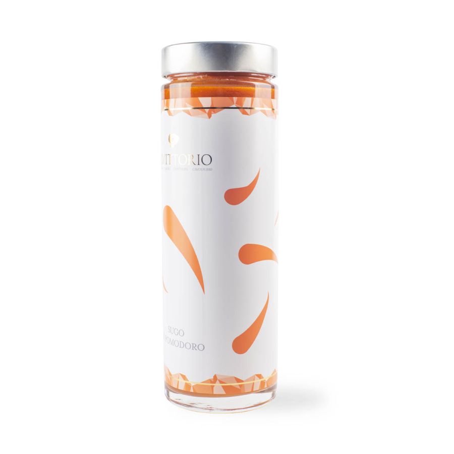 Il sugo di pomodoro Da Vittorio Selection nasce dall’unione di tre varietà selezionate: il San Marzano, dalla polpa densa e vivace, il Pachino, con il suo equilibrio zuccherino, e il Datterino giallo, delicato e vellutato. Ogni ingrediente è lavorato con attenzione, secondo una cottura lenta che ne esalta i profumi e la consistenza.